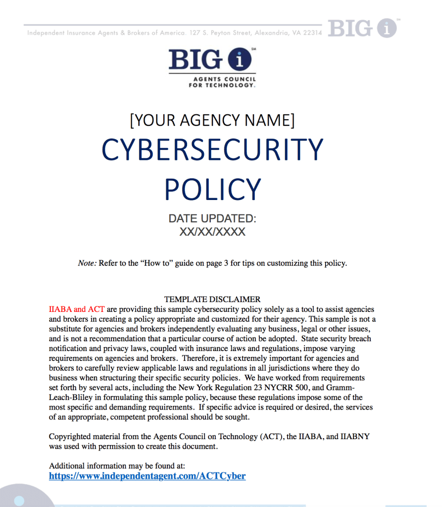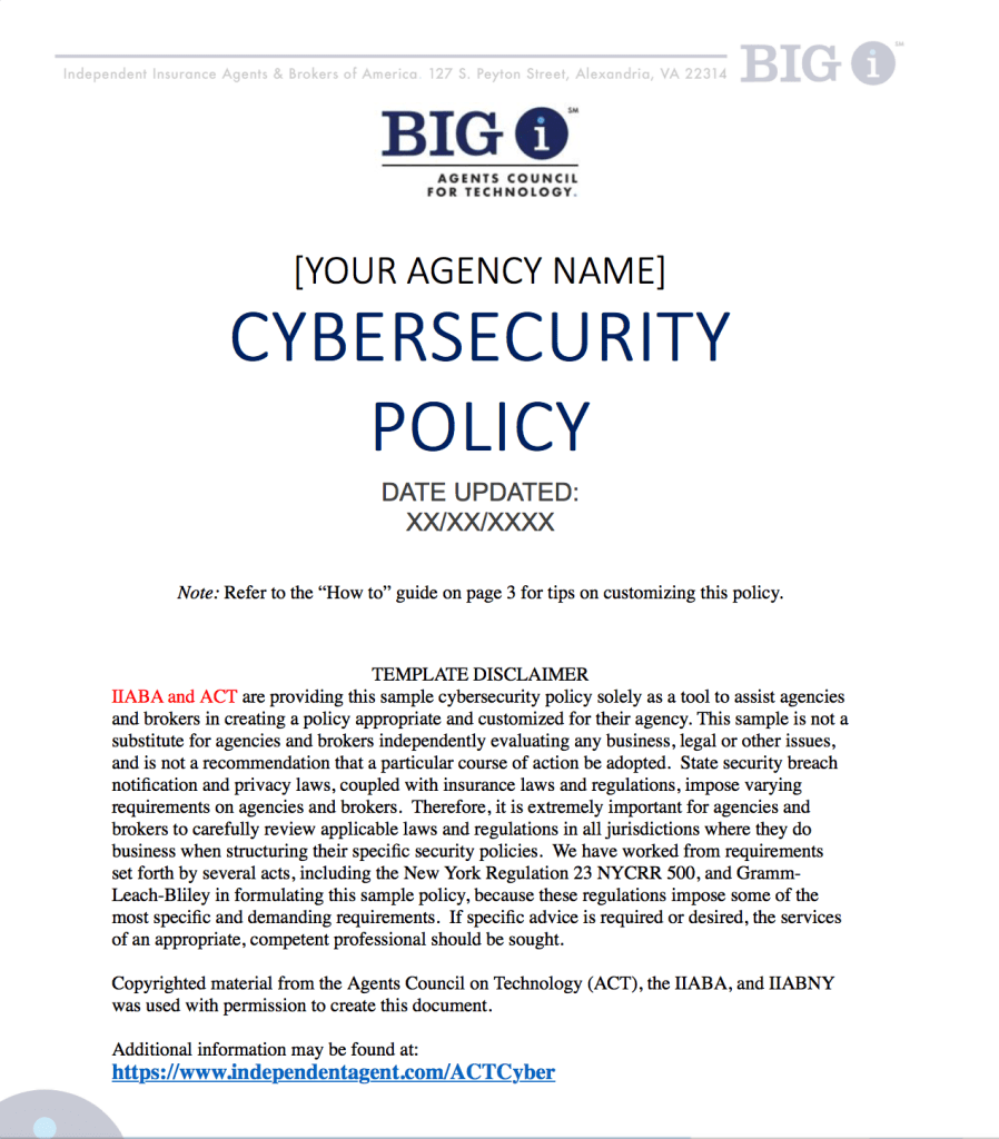 A free agency resource to create a written agency security policy – Requires Big ‘I’ ID & password to access.
