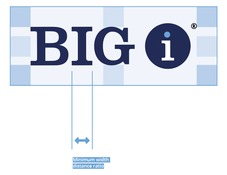There should always be a minimum clear space of the width of the uppercase “I” width within the Big “I” brand logo.