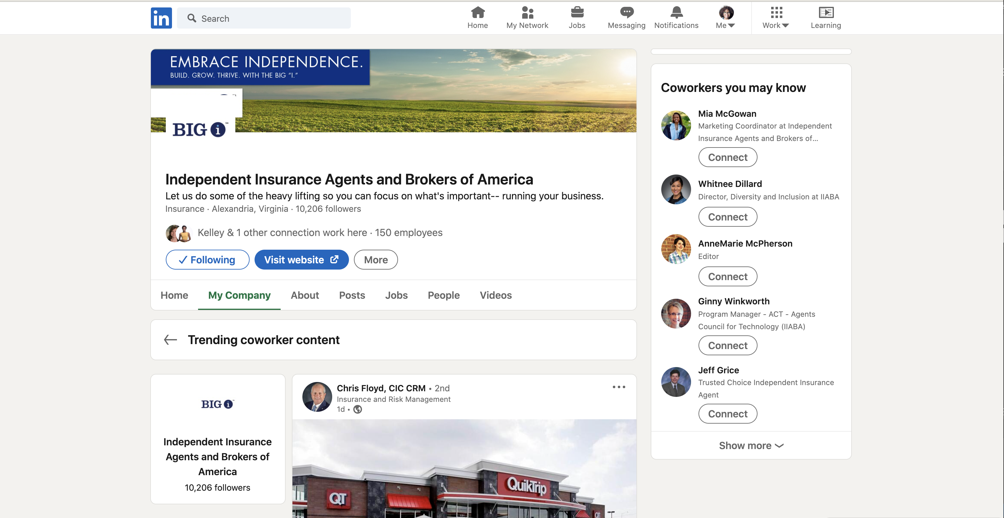 Use full company name in first reference Independent Insurance Agents & Brokers of America.