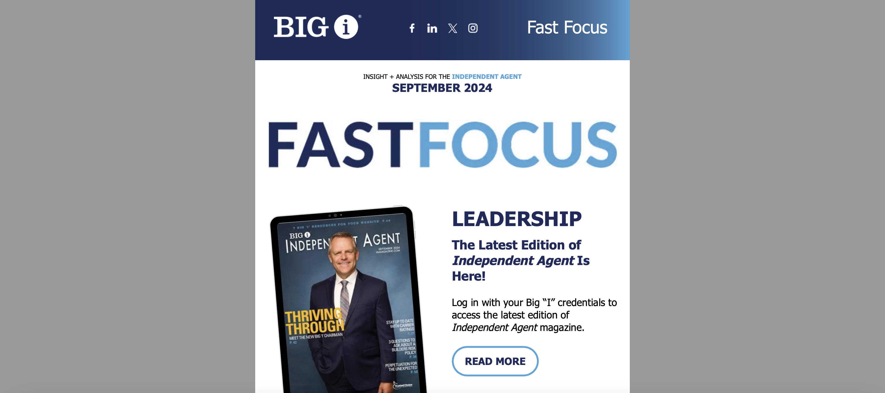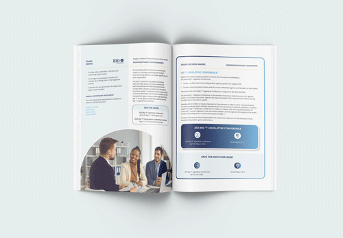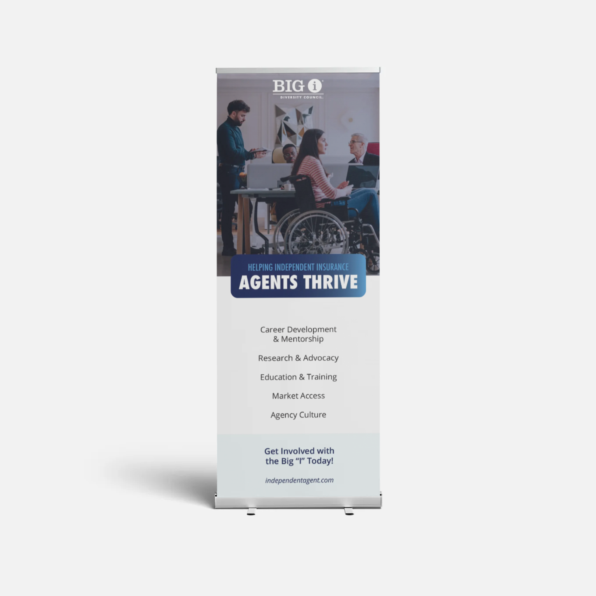 Marketing materials (postcards, flyers, etc.) should include the Big “I” logo or Big “I” program logo. Only one logo should be on each piece. Communications will create a standard Big “I” convention booth to use at state and industry events. The branding will be Big “I” and include one 6 ft table cloth and two quick screens that highlight our solutions simply.