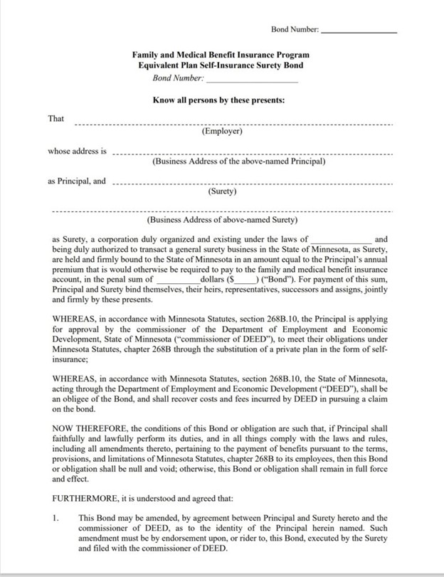 Bond Name: Minnesota Family and Medical Benefit Insurance Program, Equivalent Plan Self-Insurance Surety Bond
