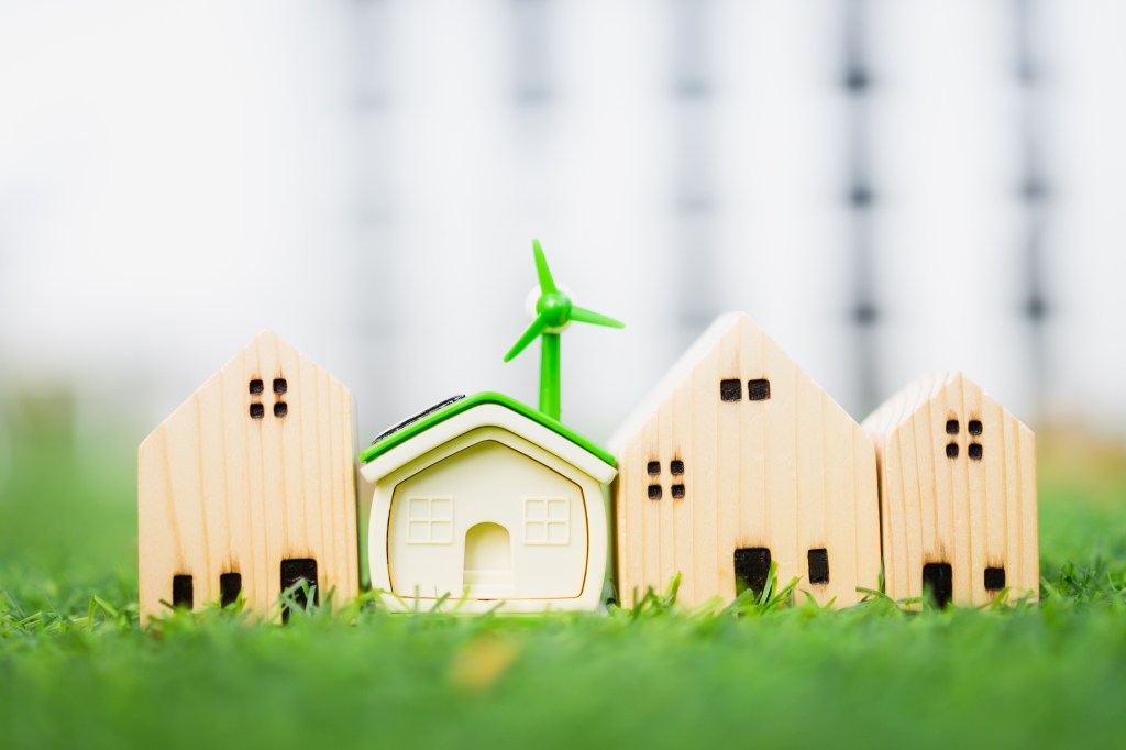 Shopping cart and home model put in inside on the wood in the public park, Select buy or sell a house and real estate for working capital concept.