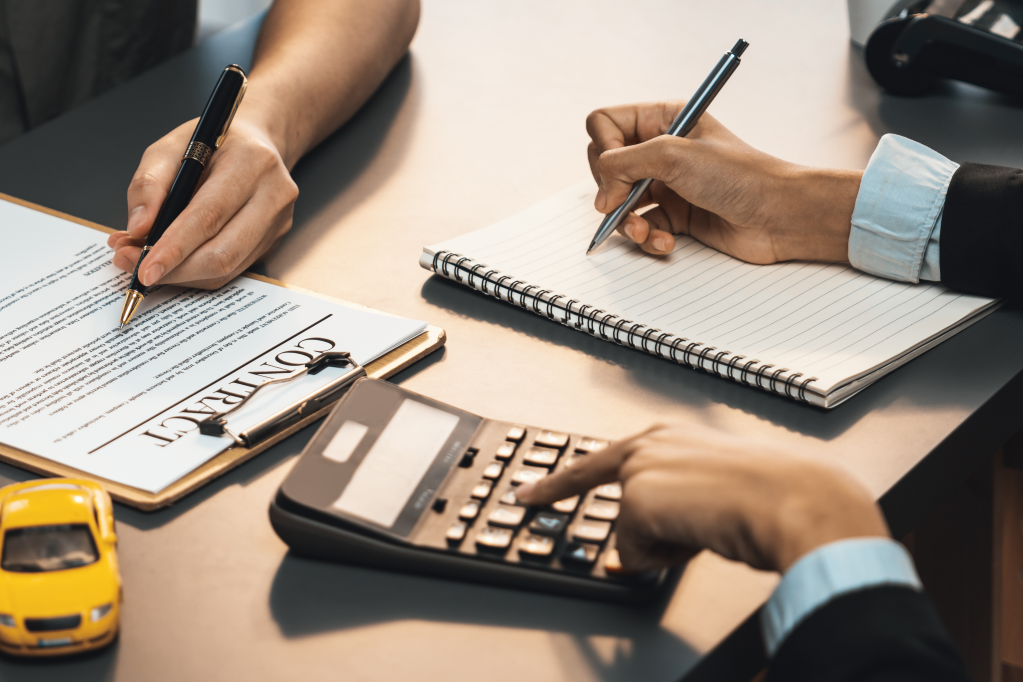 Mortgage calculation, buy and sell house or real estate or cost and expense for house owner concept, small wooden house on white calculator on wooden table.