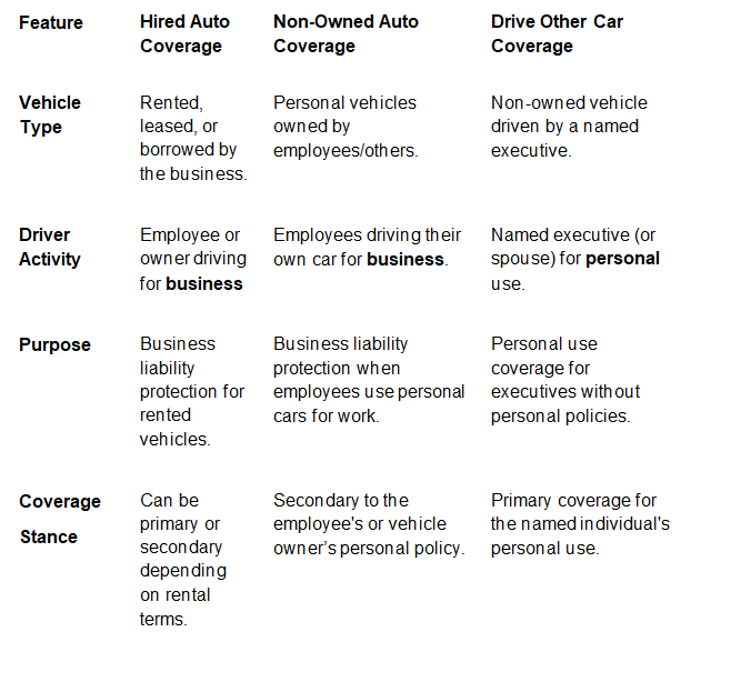 Navigating Commercial Auto Insurance: Understanding Hired, Non-Owned, and Drive Other Car Coverages