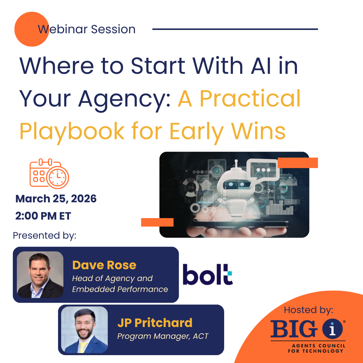 Dave Rose, Head of Agency and Embedded Performance at ACT Supporting Partner bolt, will share firsthand lessons from rolling out AI in phases inside an agency, where they started, what they standardized first, and what early results looked like. JP Pritchard, ACT Program Manager, will support the talk with insights from ACT’s 2026 Tech Trends Report.
